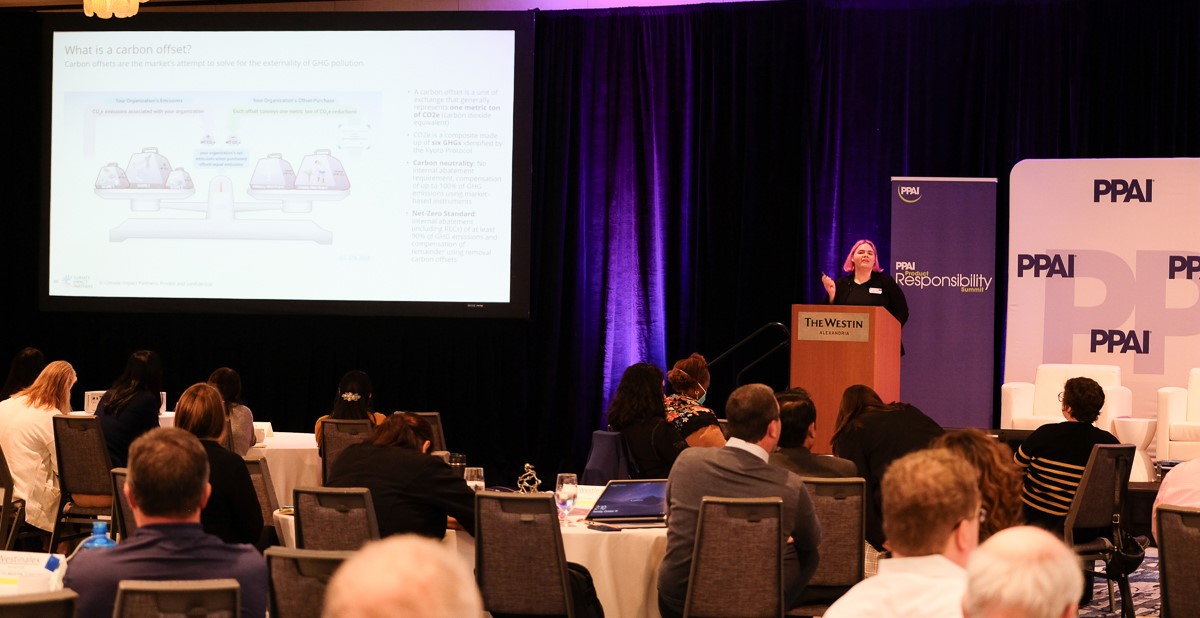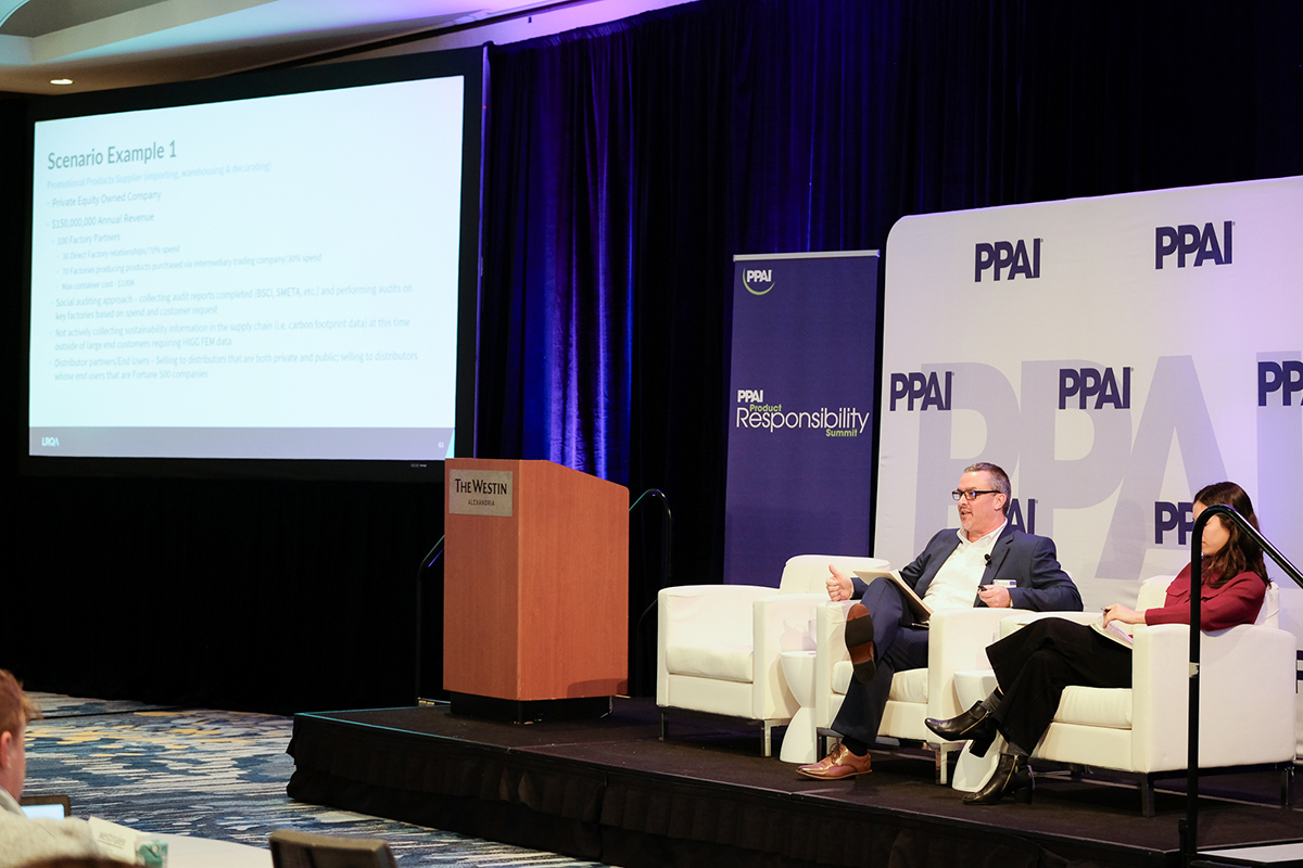 Ben Pawsey, vice president of marketing at supplier HPG – the No.8 supplier in the 2023 PPAI 100 – spoke on building sustainability processes and reporting with an organization, drawing on his experience with the company and his years with Sustainable Brands, a producer of news, events and other learning solutions for sustainability leaders.