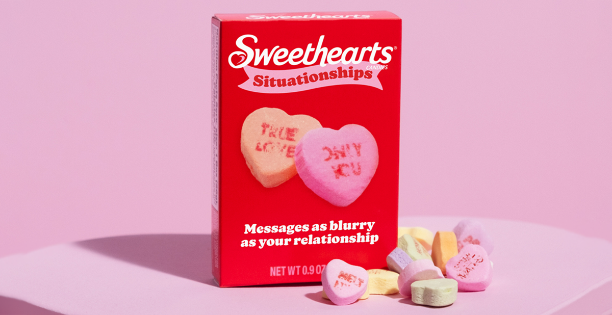 Take Sweethearts “Situationships” – Spangler Candy put their blurry and misprinted product to work making the most of the noncommittal dating trend. It’s also a brilliant way for the candy company to put otherwise defective product to good use.