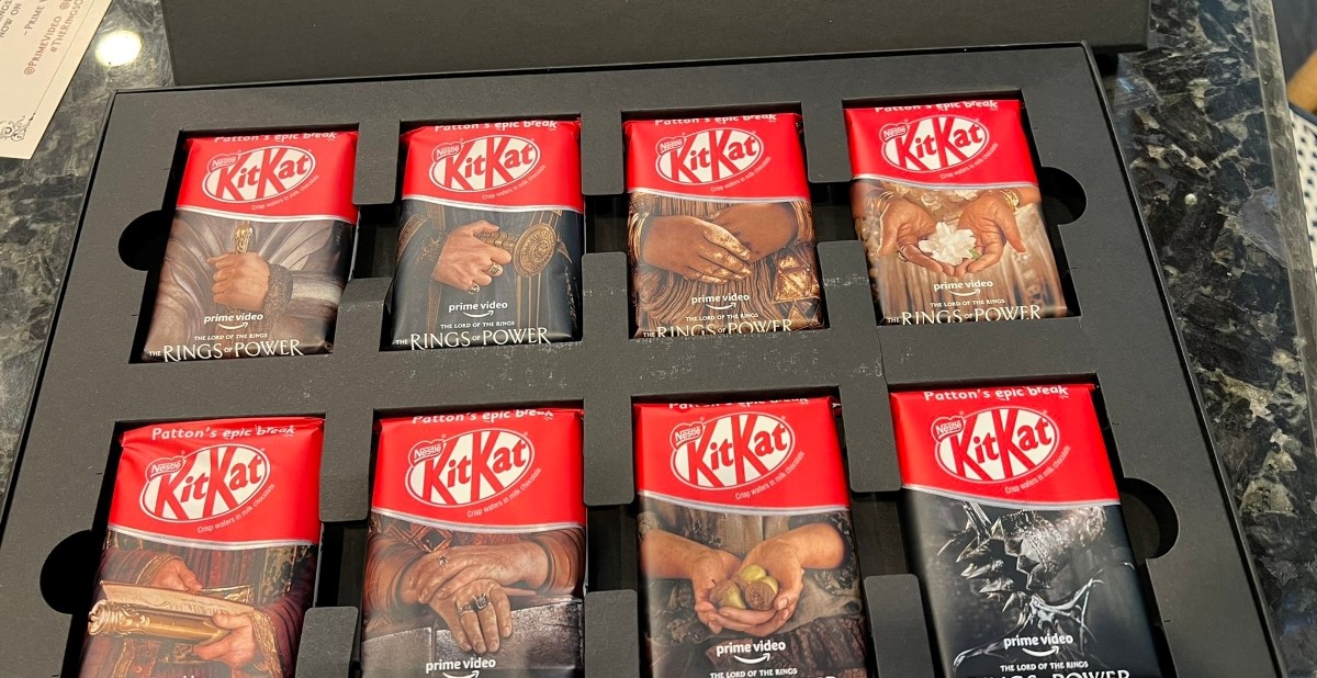 Even without a chocolate cameo in the show, Nestlé partnered with Amazon Prime to promote the new original series. In a worldwide campaign, melting chocolate flows through the rocky mountain landscape of Lord of the Rings until a KitKat is forged.