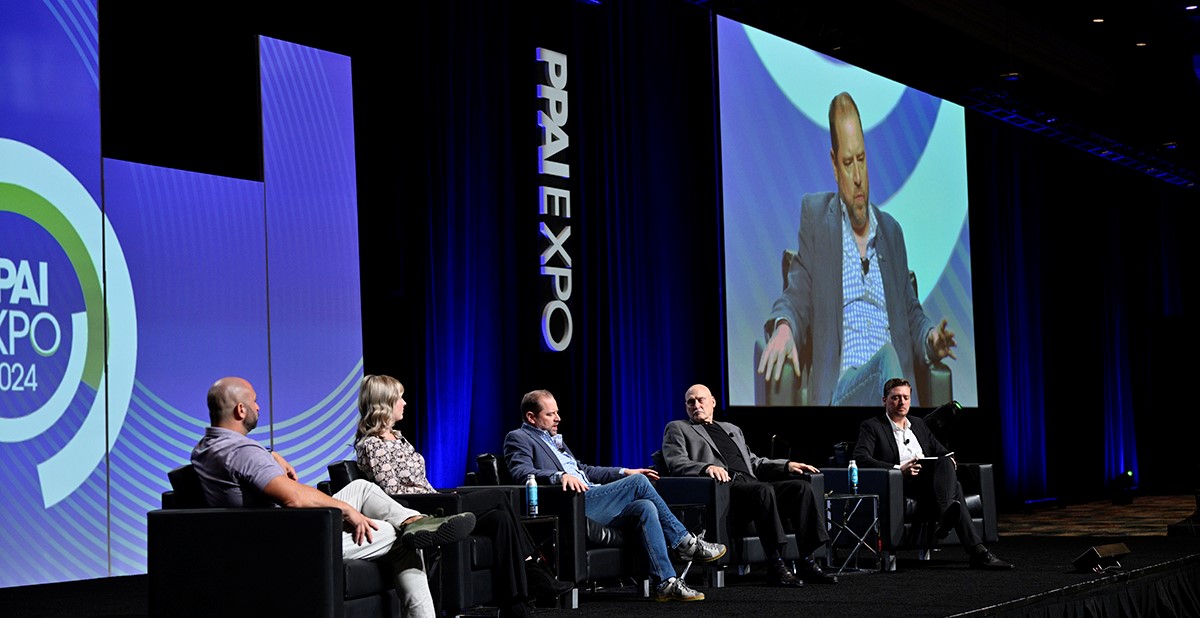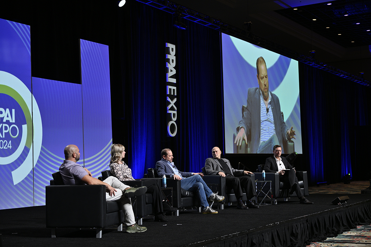 Moderator Josh Ellis, PPAI’s publisher and editor-in-chief, guided the conversation featuring 2024 PPAI Hall of Fame inductee Dave DeGreeff, MAS, and 2024 Distinguished Service Award recipient Bill Petrie. They were joined by 2023 PPAI Rising Stars Chelsea Williams and Nadav Raviv, through a discussion on their perspectives on competition, mentorship, personal growth and more.