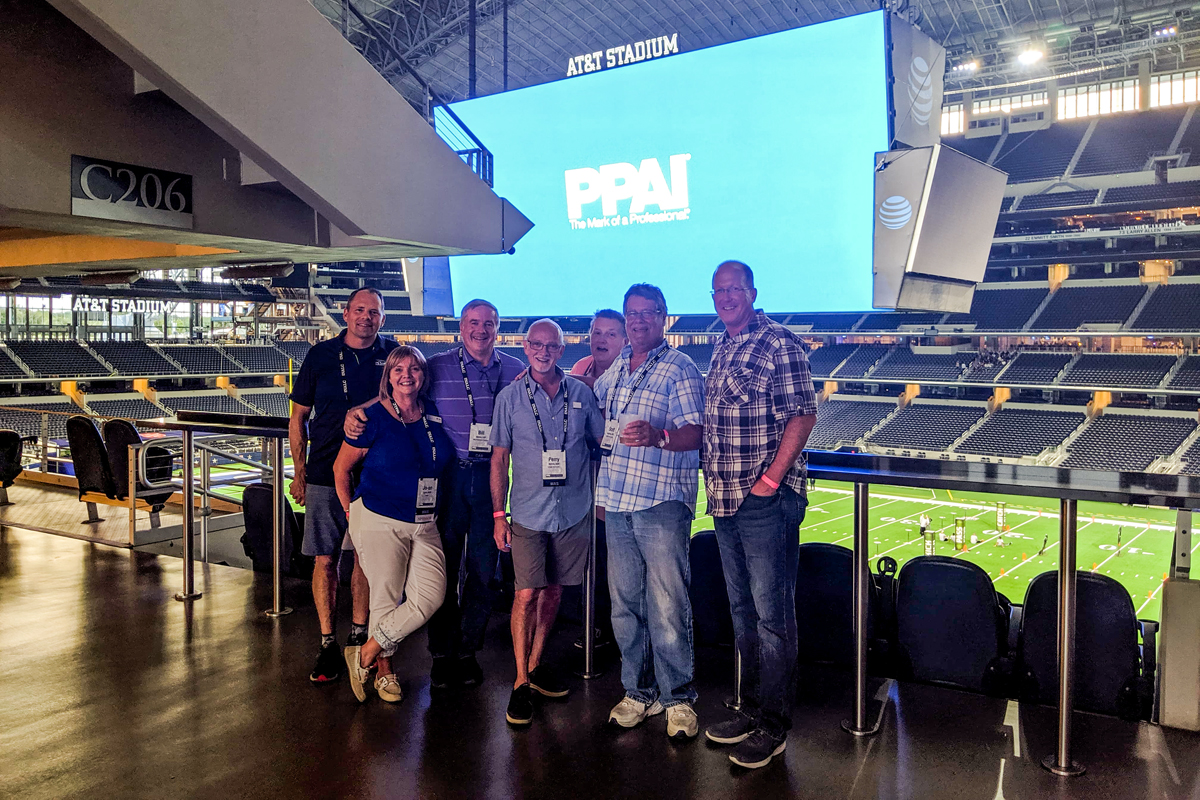 The PPAI North American Leadership Conference held this week in Irving, Texas, packed a lot of value into two-and-a-half days. Included were 10 education sessions led by top speakers, the opening dinner on Sunday night with an improv show and presentation of the PPB Rising Stars, several networking breakfasts, lunches and breaks, an off-site evening dine-around and a spectacular closing event on Tuesday evening at AT&T Stadium in nearby Arlington, which included a tour, photos on one of the world’s largest HD video screens and access to the field with its iconic blue star for pass, catch and kick games.