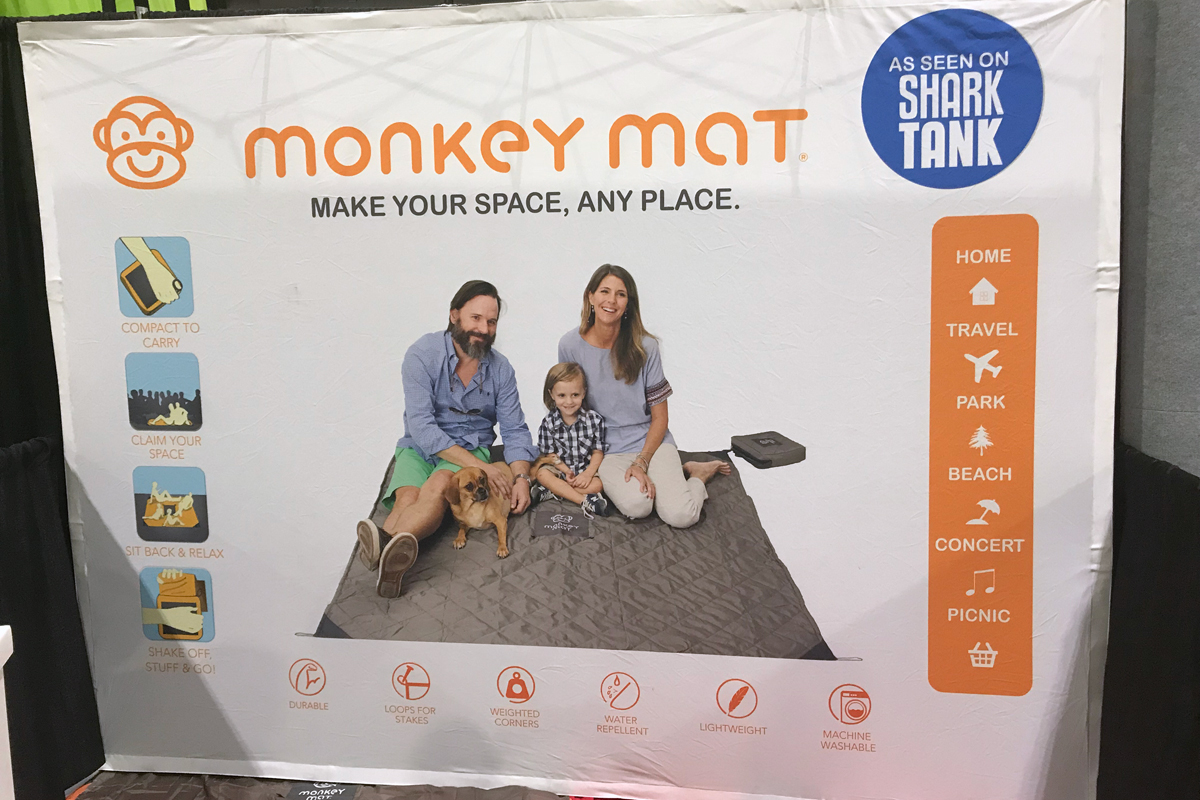 Newcomer Monkey Mat, based in Austin, Texas, is having success with their portable, water-repellant, weighted mats that fit inside a tiny attached pouch that conveniently clips to a bag or clothing. The product debuted on Shark Tank in 2014, and the owners are still working with two of the investors on the show. Courtney Jones, director of sales and marketing, says, “The carabiner clip makes it a great product for branding, because once people attach it to something, they always leave it there, and it’s a must-have when you’re on the go. Our product suits so many different demographics, such as outdoor music festivals, but they’ve also been popular with the mom-and-baby market, and we have had a lot of hospitals put them in their new mommy baskets.”