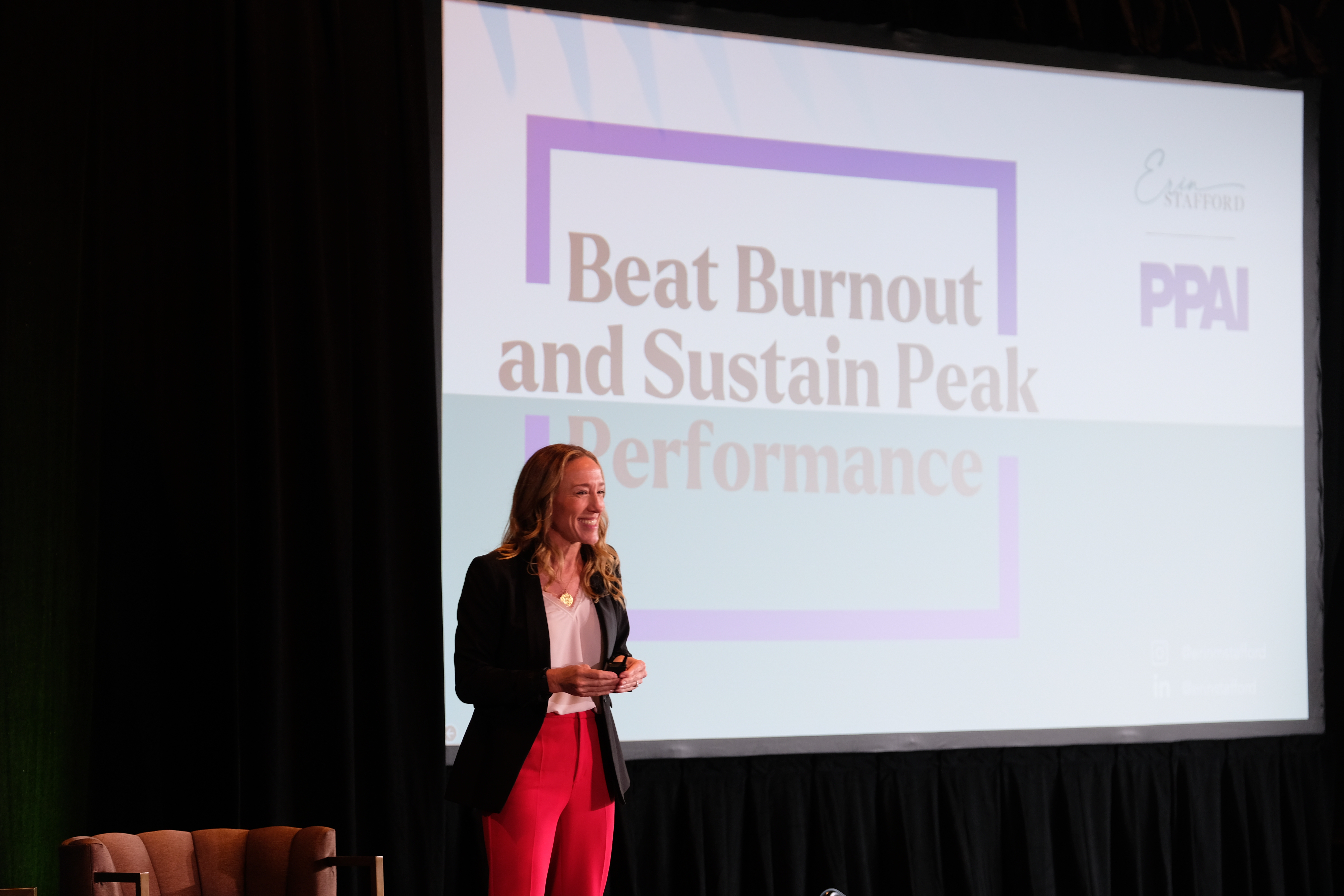 Monday’s keynote session was presented by author and speaker Erin Stafford. Challenging attendees to shift their mindset, Stafford offered practical tips for working at peak performance while avoiding burnout. “All of those things that helped us get ahead early in our career lead to burnout,” says Stafford.