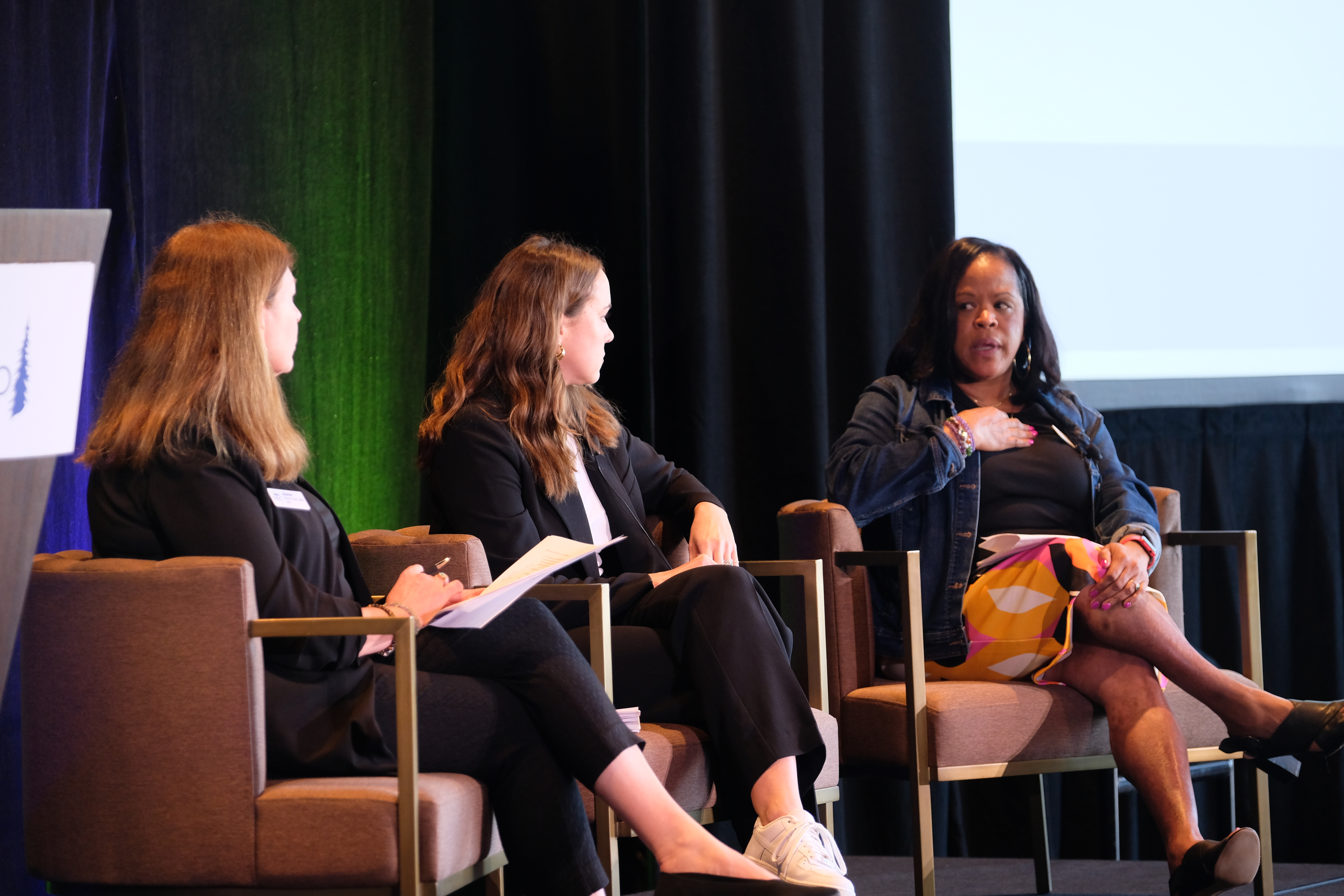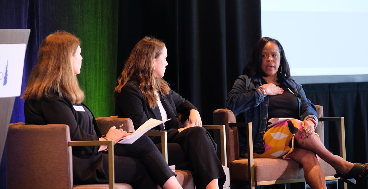 A panel on corporate social responsibility (CSR) with Cheron Coleman, Vice President of Private Brand Product Development & Global Supply Chain at alphabroder and Megan Spire, Vice President of Sales at Bella+Canvas discussed their company’s path in CSR. PPAI’s Anne Stone, CAE, MAS, Director of Member Engagement, moderated the panel. “CSR is more prevalent in conversations. People are asking more questions, but there is still a lack of awareness,” says Coleman.