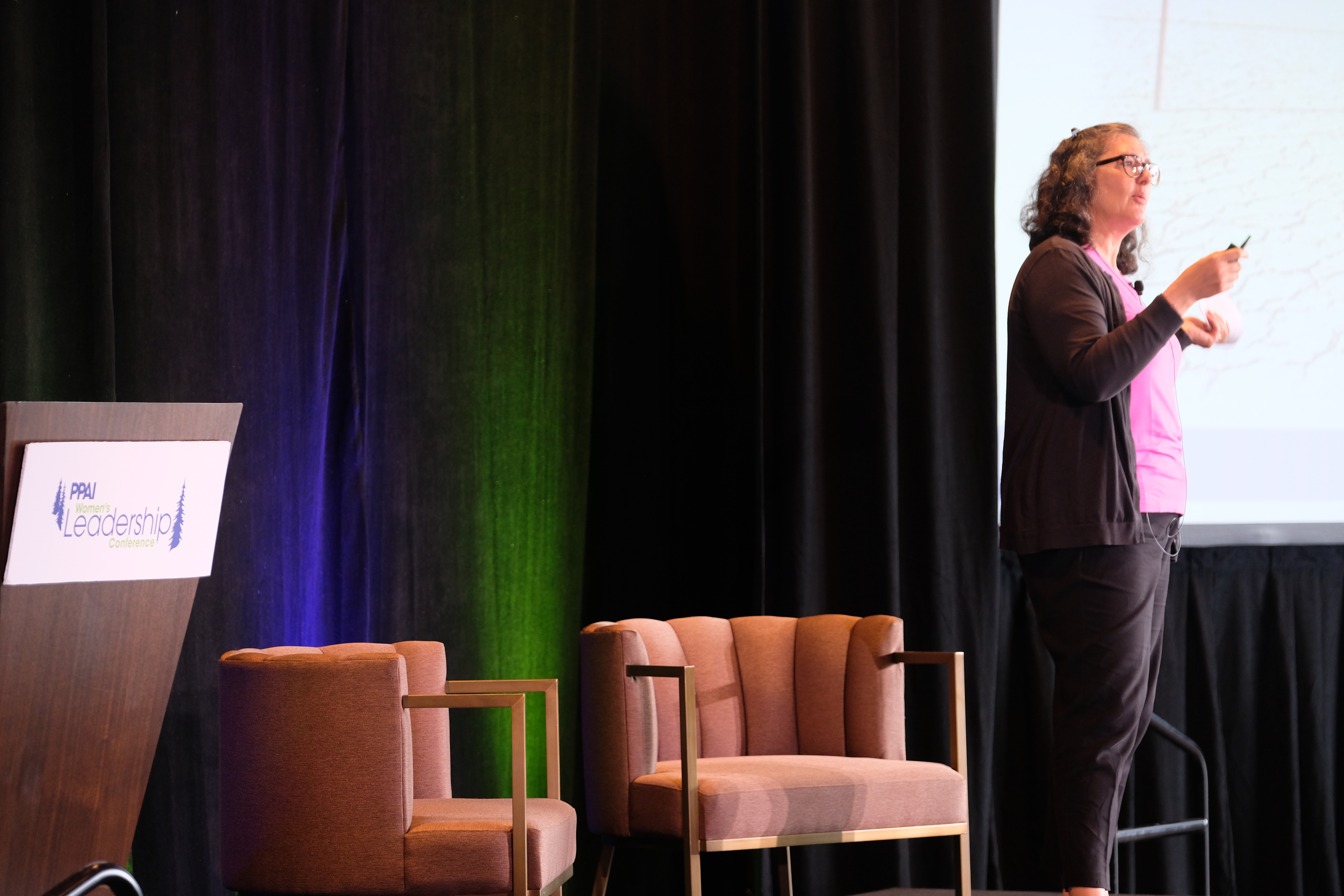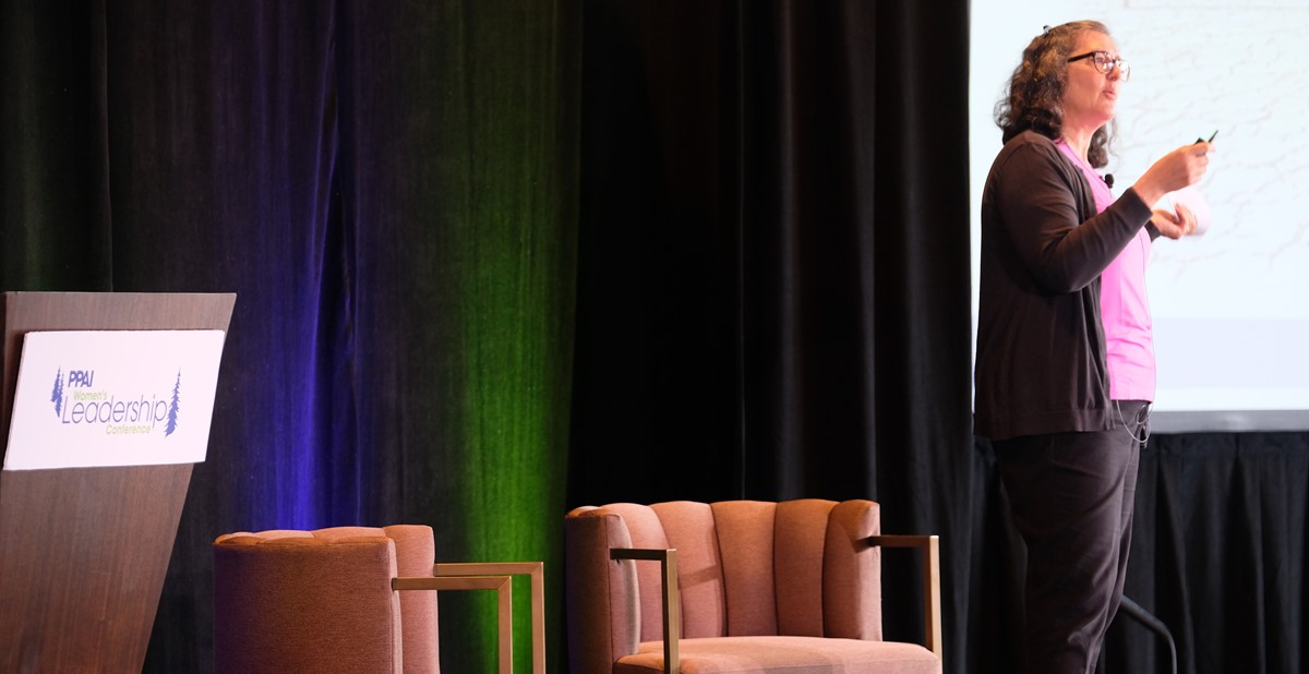 There were only a few men in attendance. PPAI President and CEO Dale Denham, MAS+, was one of them. Introducing the keynote speaker, he says, “It is a little awkward being one of the only men. Even though you are welcoming me, I still feel out of place. As a white, straight male, there are not a lot of times that I feel this way. It’s an important emotion for me to feel because I know a lot of you have felt that way at some point in your career.”