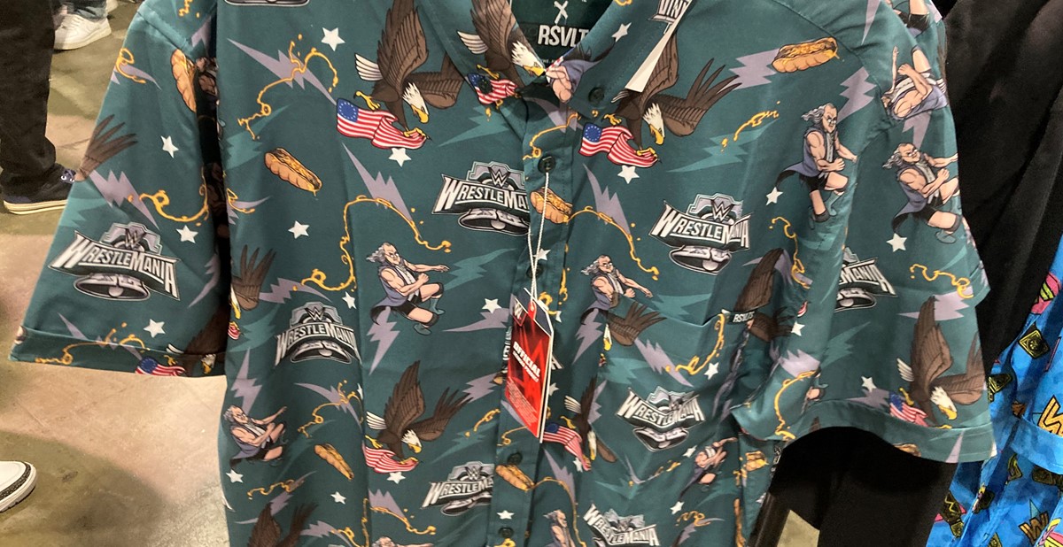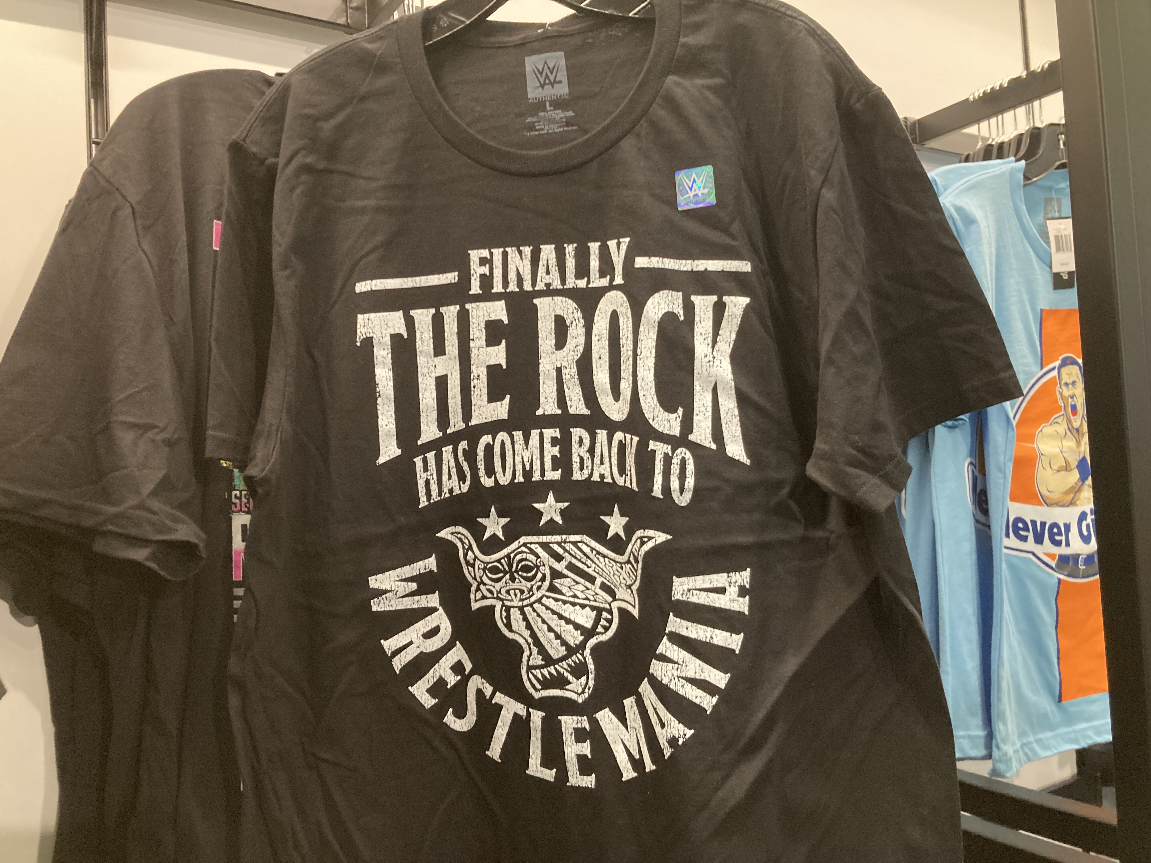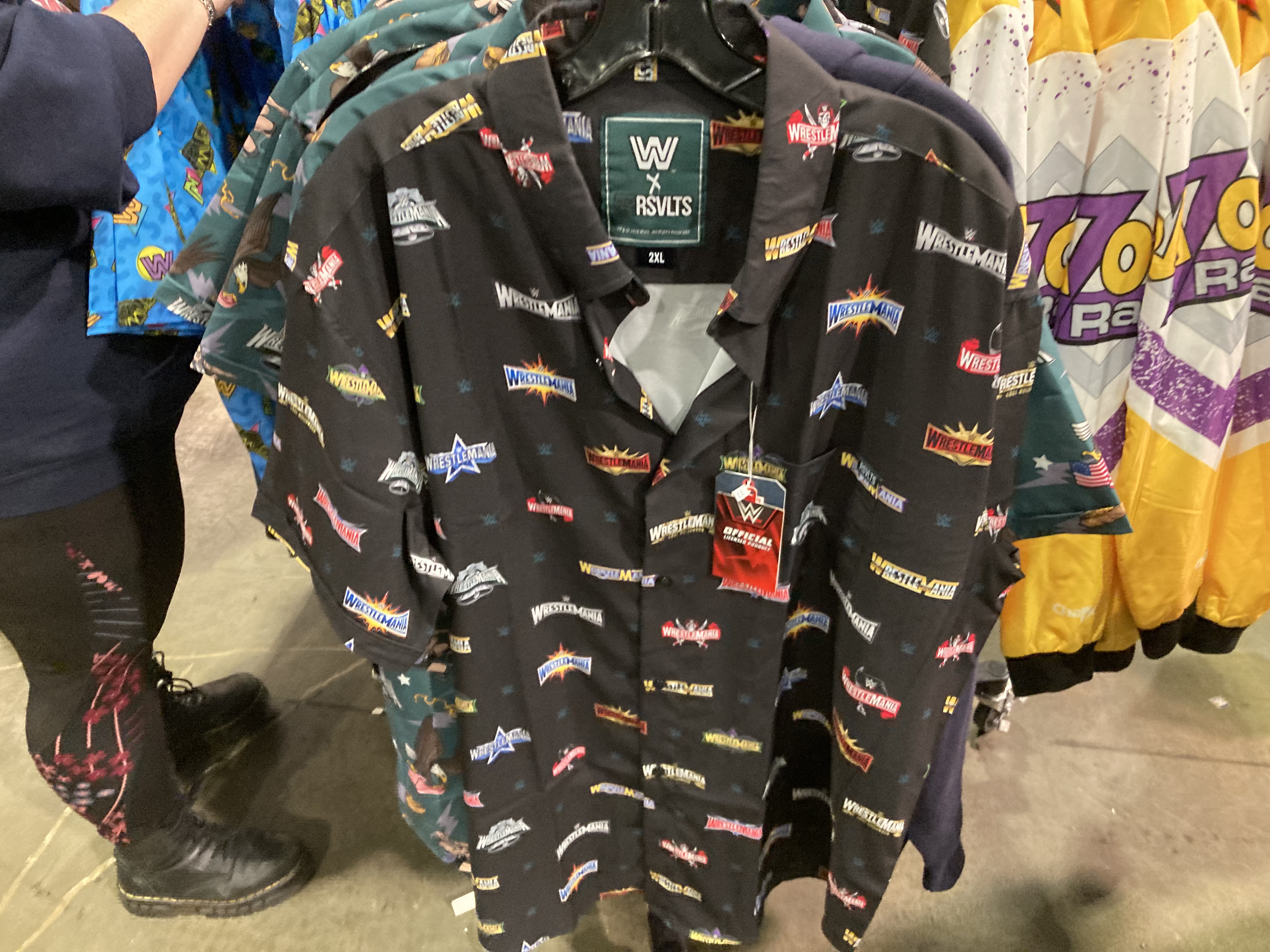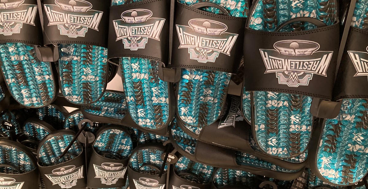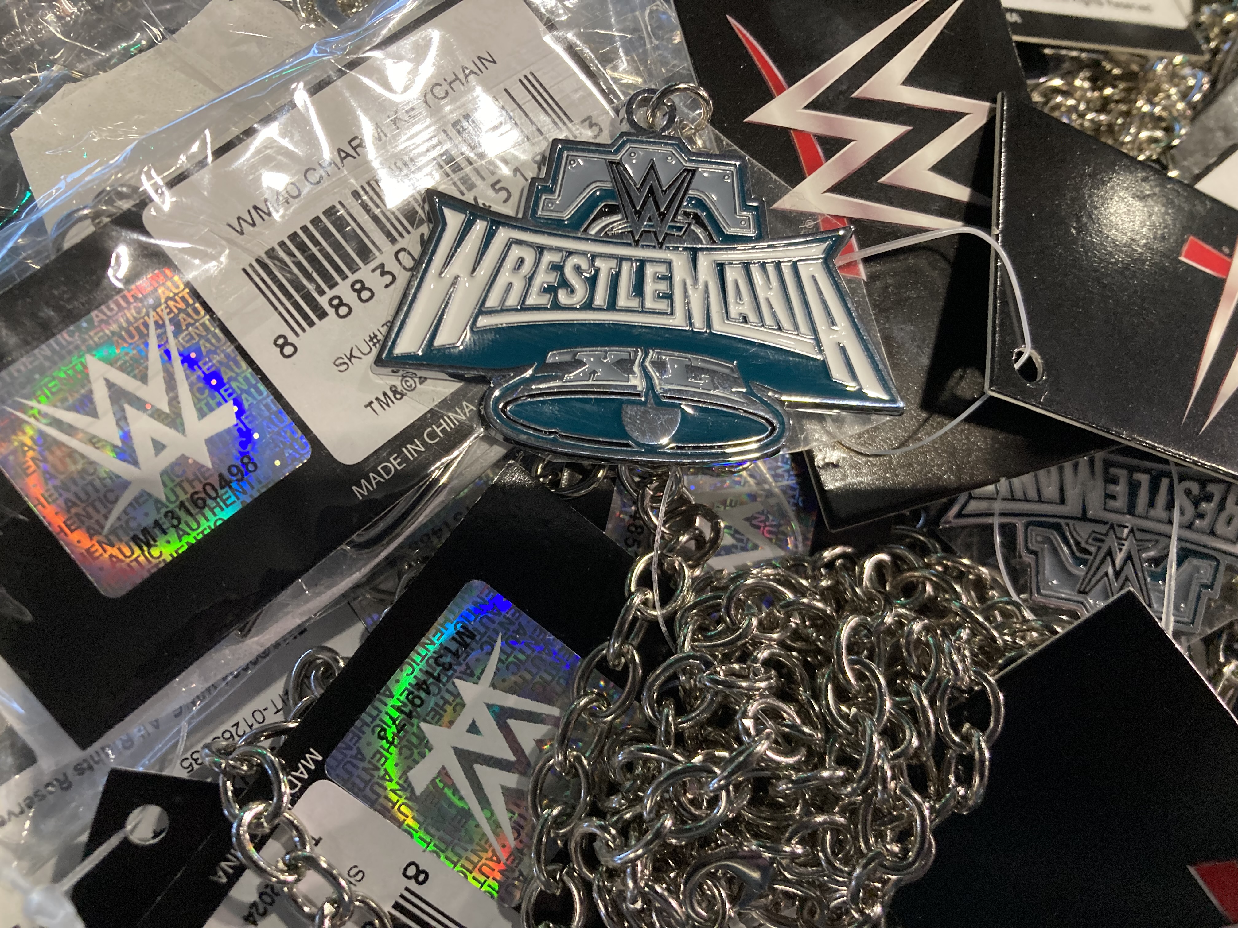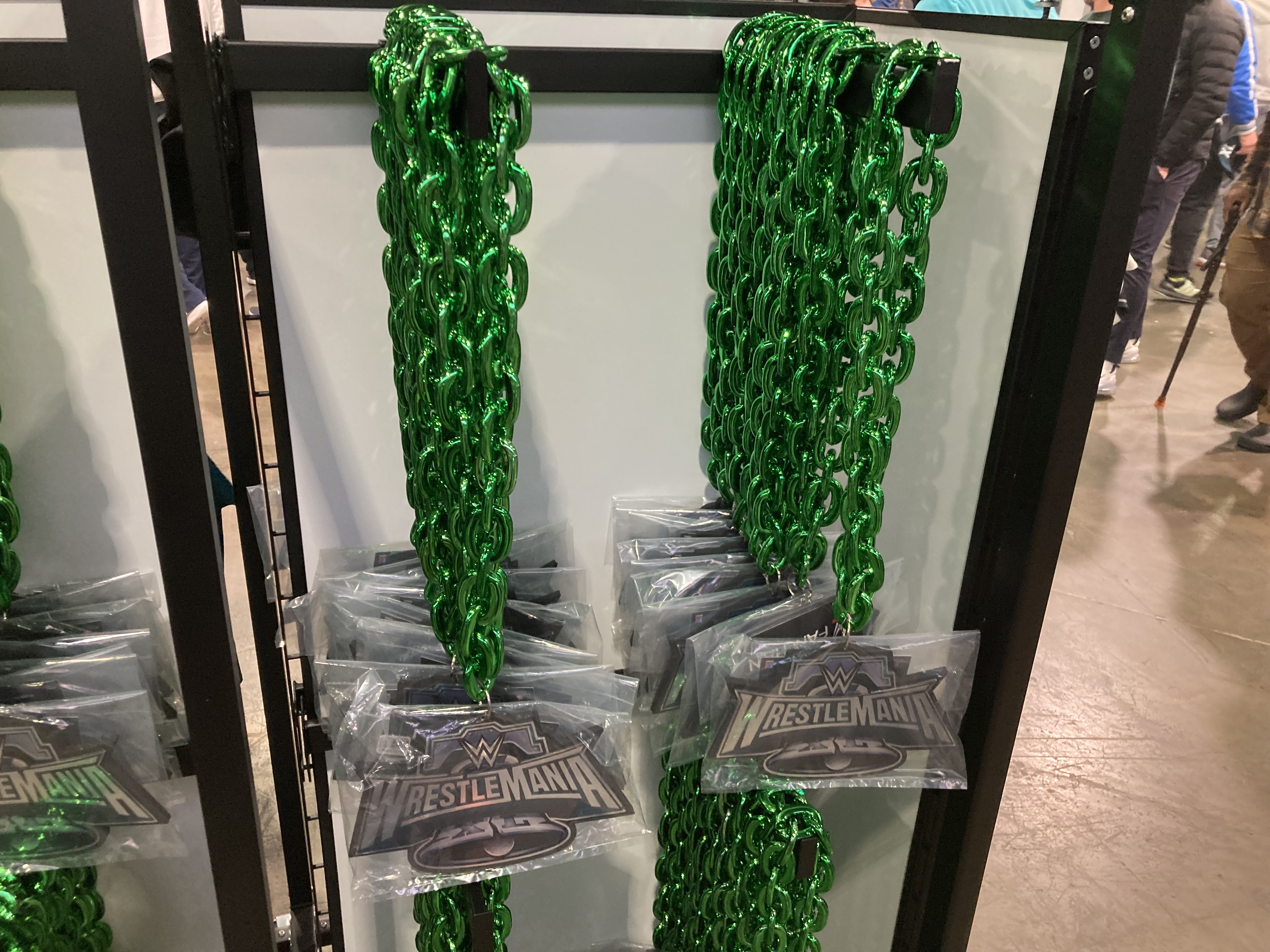 The WrestleMania Superstore served as a treasure trove for branded merchandise, featuring T-shirts, hats, championship belts, bags, pendants, flip flops, jackets, hoodies, vests, golf polos, masks, Funko Pop figures and more.