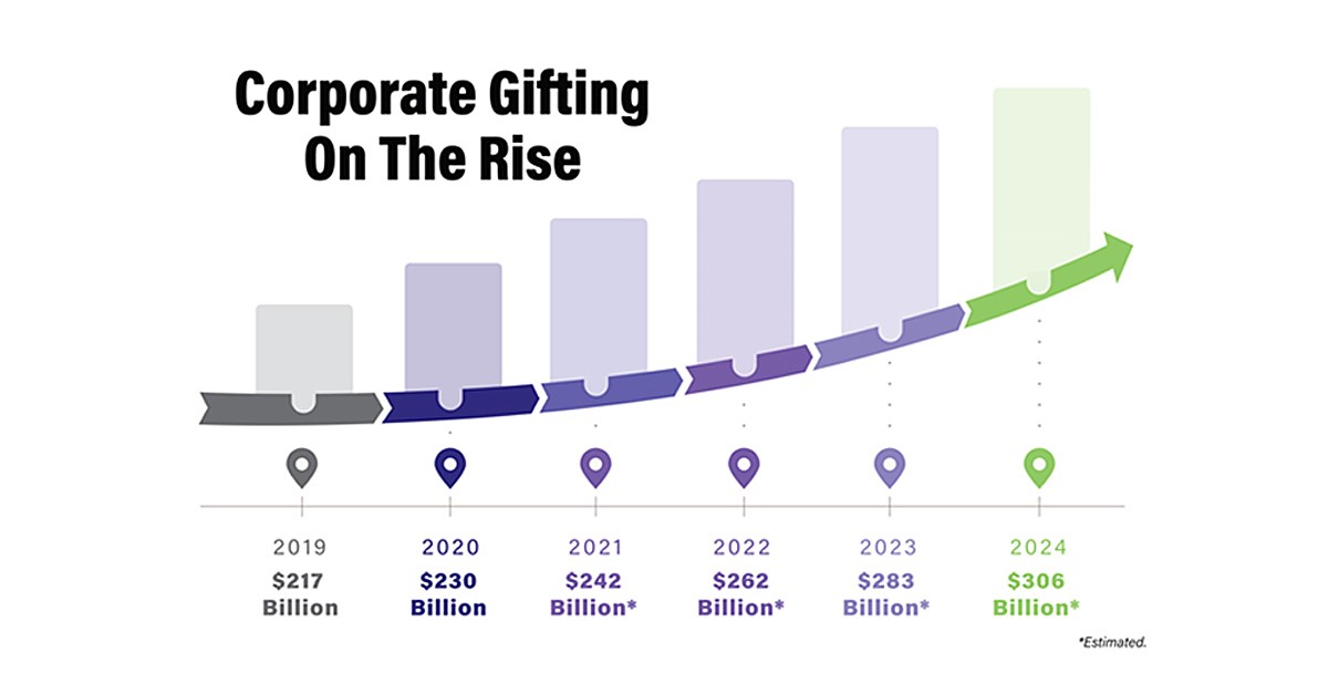 According to a recent study conducted by Coresight Research, corporate gifting has swelled to previously unrealized levels since the onset of the pandemic in early 2020.