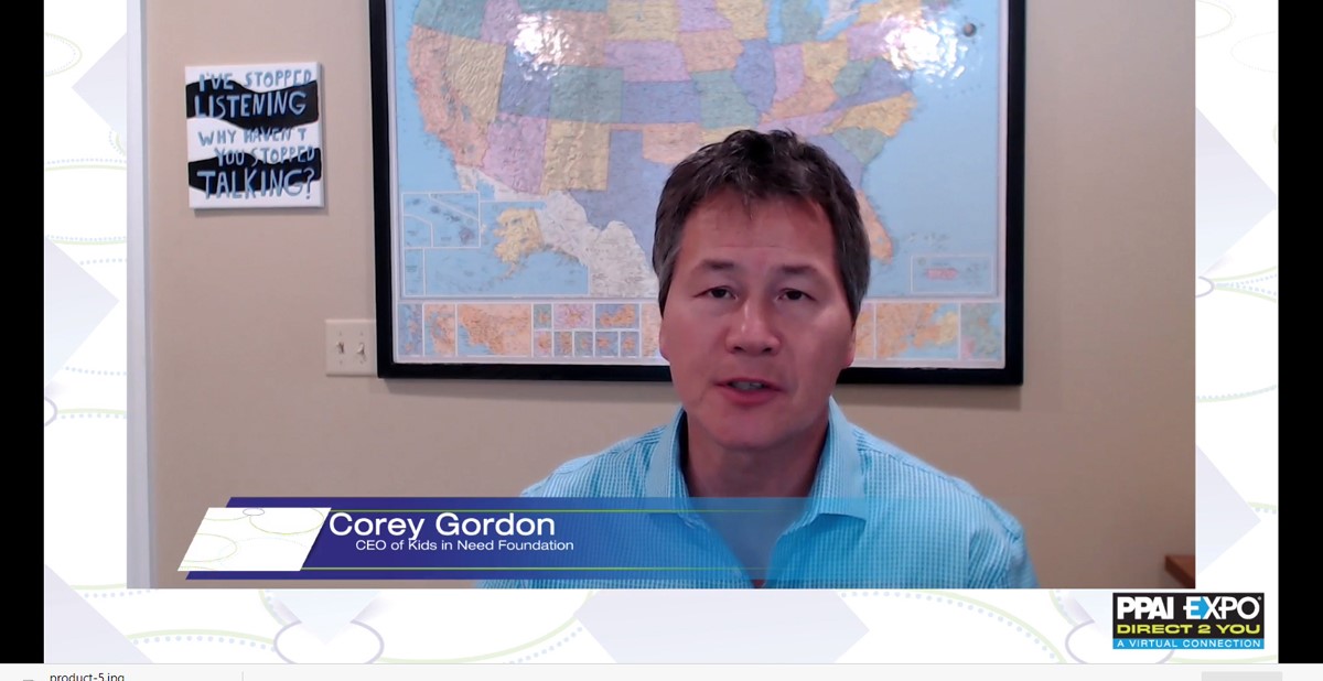 Overruns, misprints and surplus promotional products of all kinds can be repurposed to help make a substantial difference in underserved schools across the U.S. On Wednesday, Corey Gordon, CEO of Kids in Need Foundation, spoke with emcee BJ Smith during PPAI Expo D2U Live about the organization’s mission that every child in America should have equal access to a quality education.
